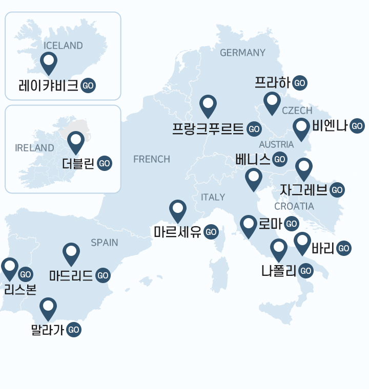 말라가 마드리드 마르세유 로마 나폴리 베니스 자그레브 비엔나 프라하 프랑크푸르트 레이캬비크 바리 리스본 아일랜드 1대1문의하기